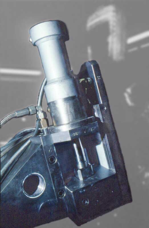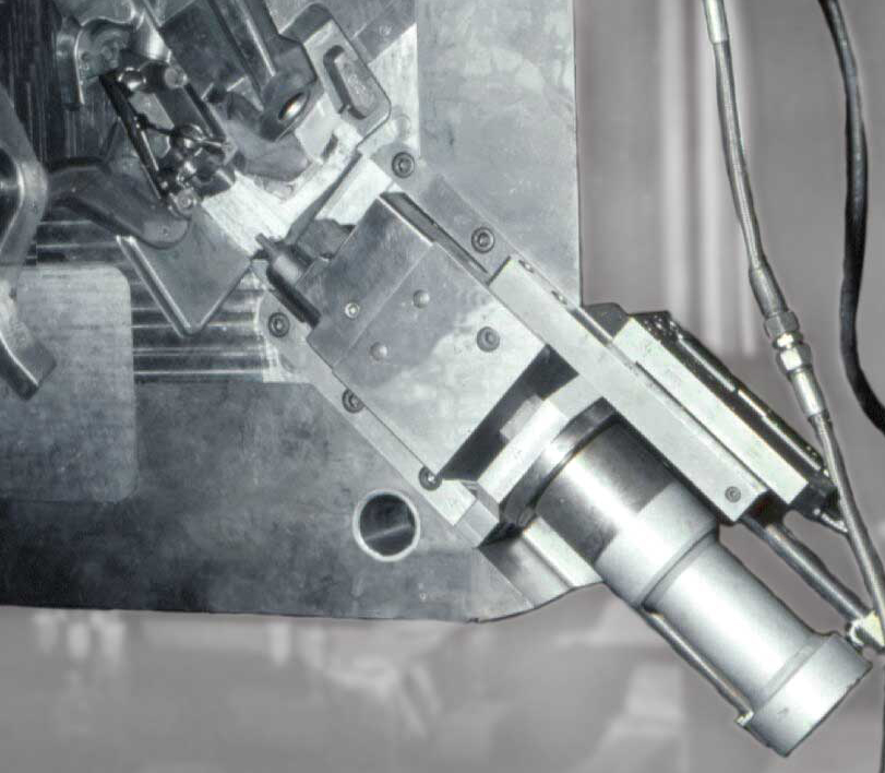 铸模的设计产量均为10万次压铸,周期时间为30至60秒。压铸专家强调说,液压缸在没有更换密封件的情况下就能承受这种负荷:“在初期,我们也对其他制造商的产品有很好的经验。但使用寿命大大缩短,其中热负荷和侧向力导致过度磨损。”铸造厂几乎只使用Hänchen电子目录E-Kat(现在的HäKo产品配置器)中的120系列标准缸,其工作压力为150巴。通过特殊的密封组合和泄油口对其进行了修改,使其适用于最高200°C的环境温度,并且适用于HFC介质。除了这个小小的修改之外,它是一个经济高效的系列气缸。出于空间原因,一个液压缸是特殊结构,另一个通过一个增压器以300巴的压力工作。由于作用在滑块上一个特别大的模具表面上的特定压铸压力,会产生56吨的力。这种力完全由Hänchen气缸承受,因此在气缸中集成了一个液压解锁的单向阀。