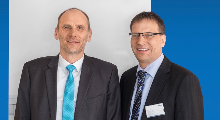 图 2:合作伙伴福伊特透平销售市场负责人 Harald Branz 先生与 Herbert Hänchen 公司总经理 Stefan Hänchen 先生