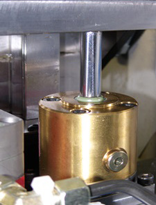 Schütte 公司管理层成员 Albert Herrscher 博士工程师报告说:“在较长一段时间内,我们一直面临着另一家制造商带来的严重的质量问题。因此,我们转而使用 Hänchen。Hänchen 随后根据我们的要求,设计了一款带有集成式玻璃标尺的双出杆液压缸,作为纵向滑块驱动装置,分辨率为 0.1 微米。自从我们使用这些液压缸以来,质量已不再是讨论的话题。”对于这家科隆公司而言,液压缸是精密系统的关键部件。其他重要部件包括阀以及上层位置控制回路,根据机器类型,该回路通过带有分散式、通过 ProfiBUS V2 连接的传感器的工业 PC 或 CNC 控制器进行寻址。因此,自 1992 年起,经典机械凸轮驱动技术和带有电动机械单元的混合解决方案被取代。对于特别长的行程,Schütte 迄今为止一直使用电动驱动装置。因为按照目前的技术水平,阀是限制该技术物理极限的部件,在 100 巴系统压力下的最大流量为 25 升/分钟。Hänchen 液压缸可以轻松应对其他尺寸。在某些机器类型中,横向滑块还包含集成到滑块中的带有单出杆液压缸的插装阀解决方案。在这种情况下,电子补偿可以实现所需的精度,而双出杆液压缸由于其对称结构,可以直接进行特别精确的控制。由于直接集成到滑块中,因此这些液压缸的稳定性尤为重要,因为更换密封件或更换非常复杂。Herrscher 博士工程师对此表示:“使用 Hänchen 液压缸,这已不再是问题!您可以安装它们并忘记它们。”