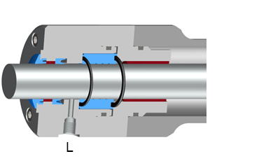 密封件组合按照以下原理工作:在系统启动时,通过液压缸腔室在环状间隙密封中建立一个流体动力油流,从而使该密封件以金属无接触的方式“浮动”地径向定心在活塞杆周围。在施加压力时,钢制衬套会变形并形成一个间隙密封,该间隙密封用作几百分之一毫米的非接触式密封间隙。但是,此方法仅在几微米的生产精度范围内有效。否则,泄漏会导致较高的液压损失。逸出的泄油通过一个收集油口无压力地返回到流体回路中。缺少接触式加压密封件可最大程度地减少液压缸中的静摩擦和滑动摩擦。环状间隙密封仅具有在最小泄漏量下降低压力的功能。因此,活塞杆通过摩擦优化的导向带进行导向。尽管如此,带有浮动环状间隙密封的液压缸也可以承受相对较高的侧向力。带有浮动环状间隙密封的液压缸的一个决定性论据是价格。因为这种质量仅在较低的允许侧向力方面与带有静压活塞杆导向的液压缸不同,但带来了约 30% 的价格优势。