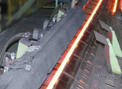 在格奥尔格斯马林许特炼钢厂的轧机冷却床上,赤热的钢制活塞杆以12米/秒的速度从精轧机组中出来。启动-停止剪切机将轧制线切割成冷却床的长度。在冷却床的引入区,通过道岔、分离装置和制动滑块,完成轧制棒从纵向减速并转移到冷却床横向运输的过程。