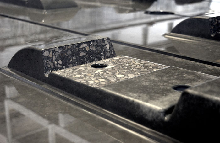 这些大型且重量大的构件在封闭的制造车间中,在受控条件下生产,并且在相同的价格下,其质量远高于直接在轨道床上露天浇筑的路面。