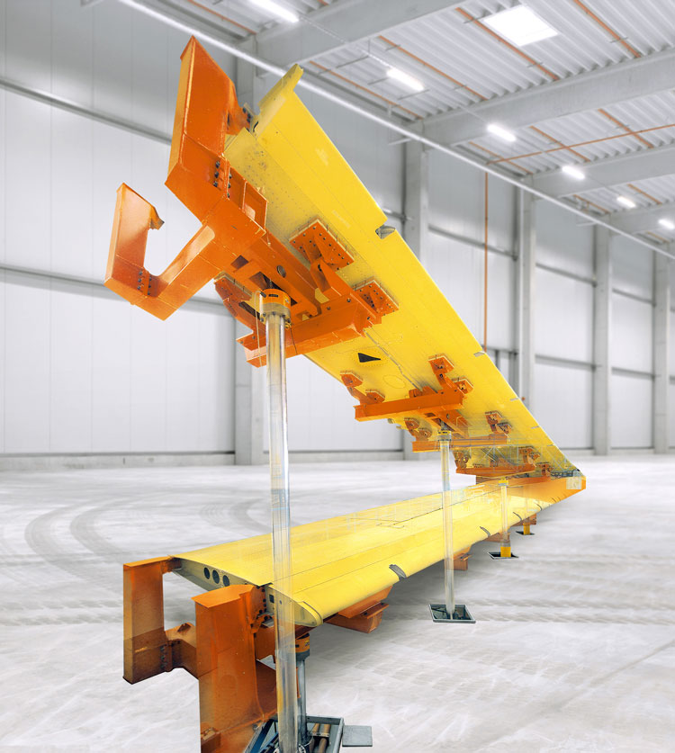 对精度的要求使得必须避免诸如液压缸的粘滑效应等干扰力。例如,在机翼尖端会出现非常小的恢复力,但同时必须以高达670 毫米/秒的速度移动它们。在此过程中,机翼从零位置向上移动高达2.9米,向下移动高达1.2米。但是,如果液压缸的活塞和活塞杆不能尽可能自由移动,则很容易发生软结构的干扰振动。这里只接受气缸额定载荷的3%的公差,实际上这些公差低于2%。干扰振动会导致意外的负载偏差并使测试结果失真。因此,特别是在飞机结构试验中使用带有Hänchen专利的浮动环状间隙密封的液压缸,因为它们具有与压力无关的相同摩擦力。在这些液压缸中,一个钢套通过间隙密封变形,从而产生几个1/100毫米的非接触式密封间隙。这项技术的前提是生产精度在几个微米的范围内,否则泄漏会导致过高的液压损失。这种Servofloat®设计的320系列液压缸与带有静压活塞杆导向的液压缸相比,具有约30%的成本优势。Hänchen的测试缸由于其非常低的摩擦力,因此可以实现非常高的定位和重复精度,无粘滑现象,并且同样适用于极慢和极快的运动。但是,Hänchen液压缸的选择也取决于其稳定性。毕竟,试验每周7天,每天24小时运行。