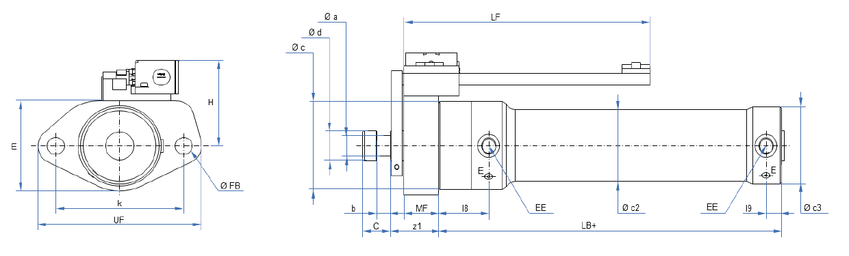 * EE 活塞杆侧,在活塞侧法兰中附加
